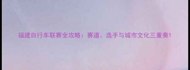 福建自行车联赛全攻略:赛道、选手与城市文化三重奏